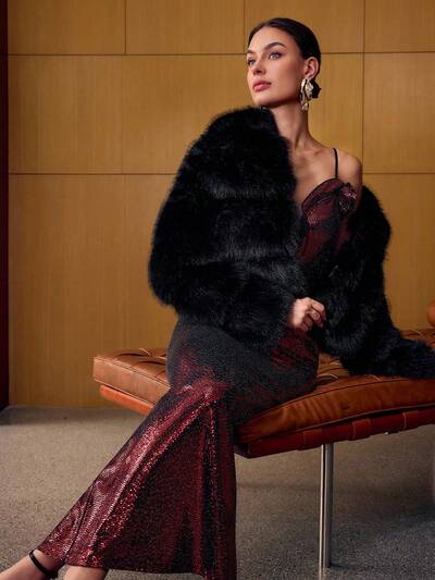 CHIC HOODED FAUX FUR COAT, AUTUMN/WINTER
