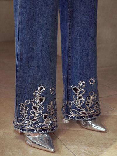 EMBROIDERY RHINESTONE JEANS-54%
