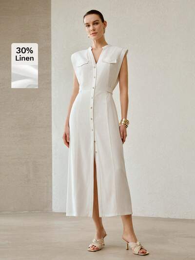 FASHIONABLE DESIGN SLEEVELESS WAIST TIE ADJUSTABLE LINEN MIDI DRESS FOR WOMEN-45%