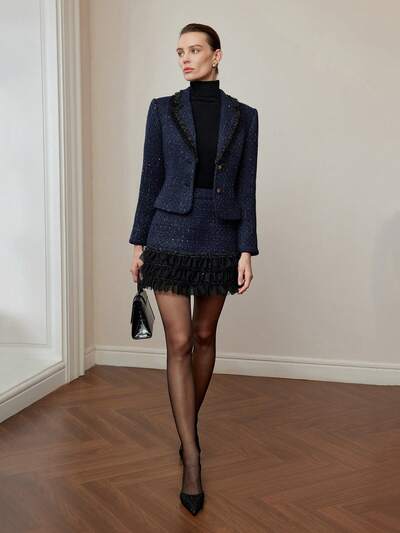 TWEED CONTRAST LAYERED RUFFLE HEM SKIRT-58%