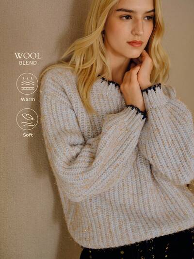 CONTRAST COLOR METALLIC THREAD KNIT PULLOVER SWEATER, AUTUMN/WINTER-38%