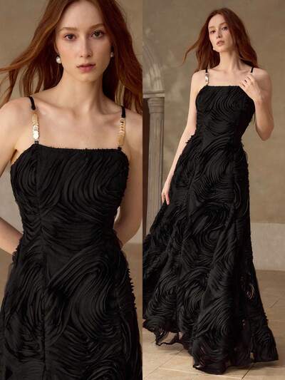 WOMEN'S METAL DETAIL SPAGHETTI STRAP TEXTURED LONG DRESS, AUTUMN/WINTER-42%