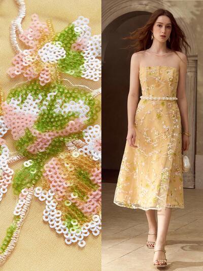 FLOWER EMBROIDERY GUIPURE LACE APPLIQUE TUBE DRESS,VALENTINE'S DAY OUTFIT,SPRING/SUMMER-23%
