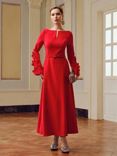 ELEGANT WAIST CINCHED FLARED DRESS FOR WOMEN, AUTUMN/WINTER, CHRISTMAS DRESS, RED DRESS, NEW YEAR DRESS-38%