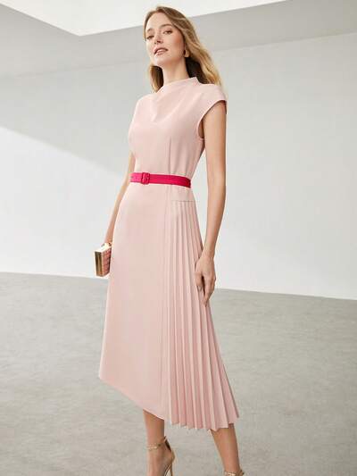 BELTED PLEATED MIDI DRESS-23%
