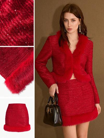 TEXTURED CONTRAST FAUX FUR WARM AUTUMN/WINTER MINI SKIRT-43%