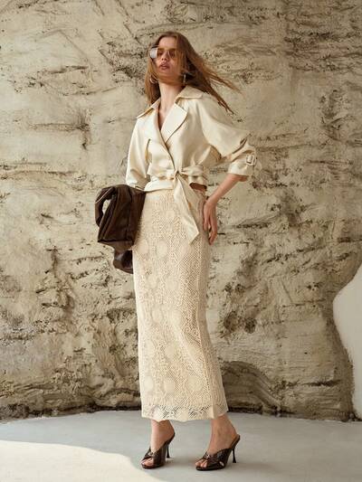 SOLID COLOR HOLLOW-OUT KNITTED WOMEN'S LONG PENCIL SKIRT-25%