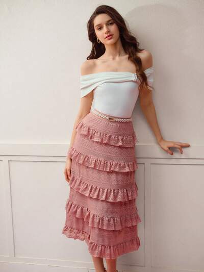 RUFFLE LAYERED HEM SKIRT,VALENTINE'S DAY-62%