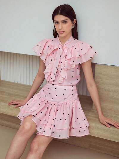 MOTF STUDIO HEART PATTERN TIERED LAYER SKIRT-64%