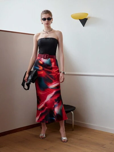 MOTF STUDIO ALLOVER PRINT MERMAID HEM SKIRT WITHOUT BELT-40%