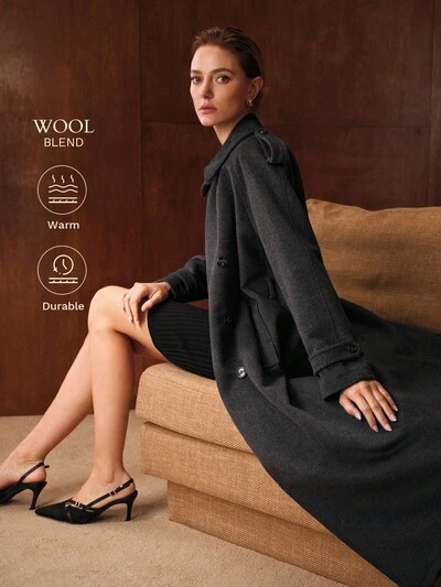 WOOL BELTED BUTTON UP OVERCOAT FOR AUTUMN & WINTER-55%