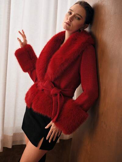 CONTRAST FUZZY COLLAR BELTED OVERCOAT-48%