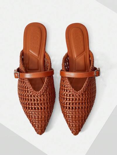 WOMEN SHOES NEW FRENCH FASHION HOLLOW WOVEN STRAP BUCKLE POINTED FLAT BOTTOM, VERSATILE, COMFORTABLE, FASHIONABLE, LIGHTWEIGHT, SIMPLE AND HIGH-END ELEGANT ELEGANT AND SEXY FLATS SHOES SPRING SHOES