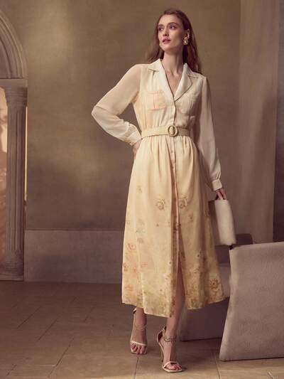 APRICOT FLORAL PRINT ROMANTIC DRESS-46%
