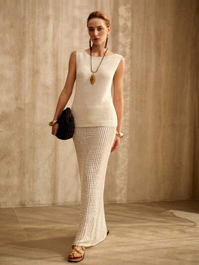 VINTAGE STYLE SLEEVELESS CROCHETED BOAT NECK SWEATER VEST, SPRING/SUMMER-54%