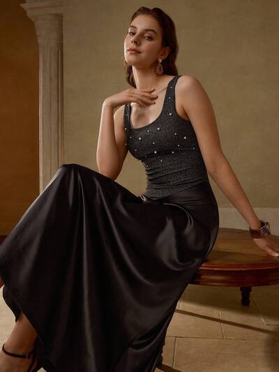 FAUX PEARL DECOR A-LINE DRESS-57%