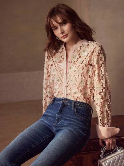EMBROIDERY FAUX PEARL DECOR BLOUSE-56%