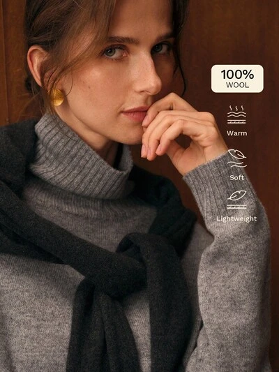 100% WOOL TURTLENECK SWEATER, ELEGANT FOR EVERYDAY WEAR, AUTUMN/WINTER-46%