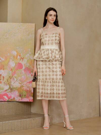 CONTRAST LACE RUFFLE HEM DRESS-63%