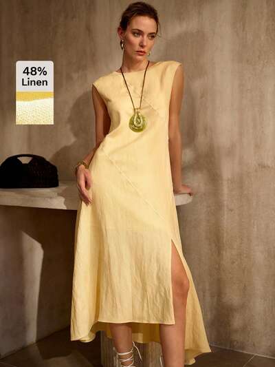 ASYMMETRIC HEM SLEEVELESS LINEN SHIFT DRESS, MINIMALIST URBAN STYLE, SPRING/SUMMER