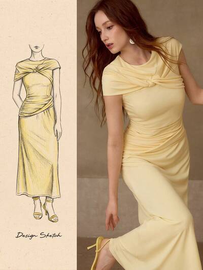 SOLID TWIST FRONT CUTOUT RUCHED WAIST DRESS-36%