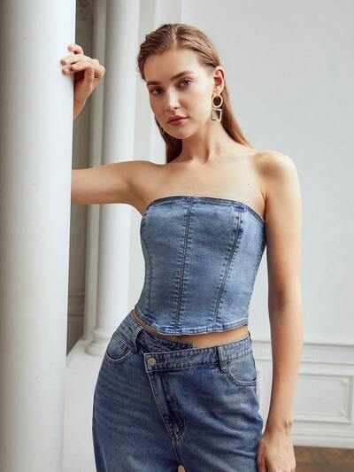 ZIPPER BACK DENIM TUBE TOP-50%