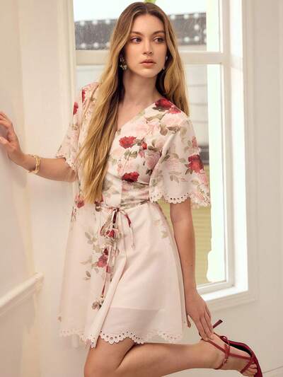 WOMEN'S ROMANTIC ELEGANT PRINTED LONG SLEEVE SHORT DRESS, SPRING/SUMMER-54%