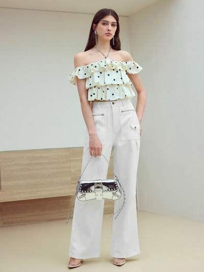 WOVEN WOMEN'S MULTI-LAYER RUFFLE TRIM STRAPLESS DRESS,VALENTINE'S DAY OUTFIT-46%