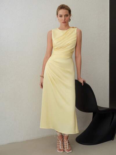 WOMEN'S WEAVE SOLID COLOR SPLICED PLEATED DRESS,SUMMER OUTFITS-33%
