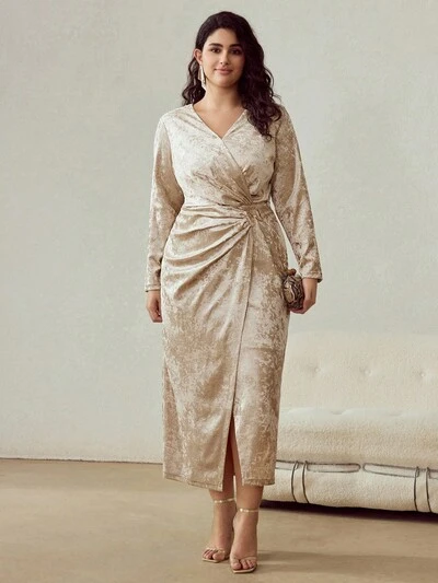 CHRISTMAS PLUS SIZE WOMEN VELVET STRUCTURED DESIGN MID-LENGTH DRESS-34%