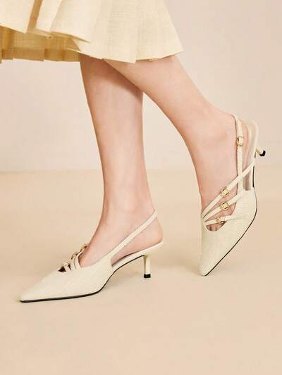 POINTED TOE METAL DETAIL LOW HEEL WOMEN ELEGANT COMMUTING PUMPS, FOR VALENTINE'S DAY PROM HEELS-14%