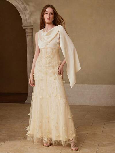 WOMEN'S ELEGANT LACE PATCHWORK MERMAID HEM LONG DRESS, SPRING/SUMMER-23%