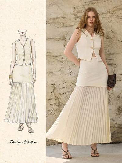 2PCS/SET WOMEN'S SLEEVELESS TOP AND PLEATED SKIRT SUIT, OFFICE WEAR-57%