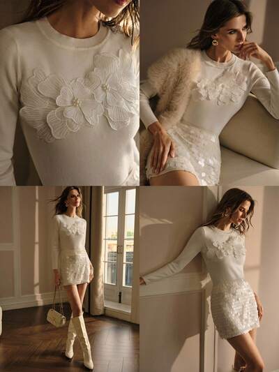FLORAL EMBROIDERED APPLIQUES WHITE LONG SLEEVE WOMEN SWEATER-61%