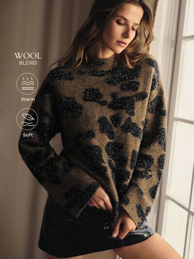 OVERSIZED FUZZY LEOPARD PRINT SWEATER, SUITABLE FOR AUTUMN/WINTER PARTY-53%