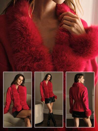 CONTRAST FUZZY TRIM CARDIGAN-54%