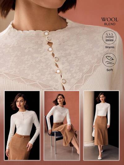 POINTELLE KNIT ROUND NECK KNIT TOP KNIT PULLOVER FALL WINTER-51%