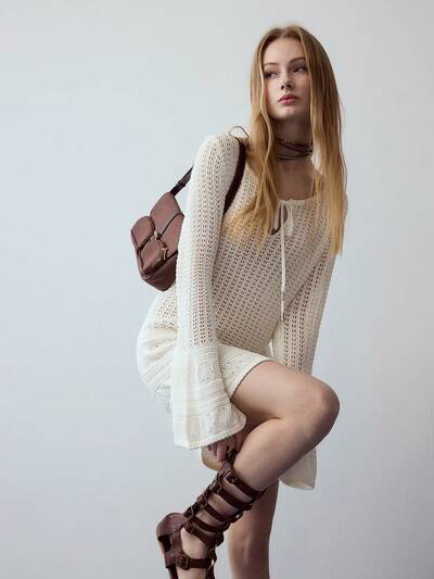 MOTF STUDIO OPEN KNIT TIE NECK SWEATER DRESS-54%