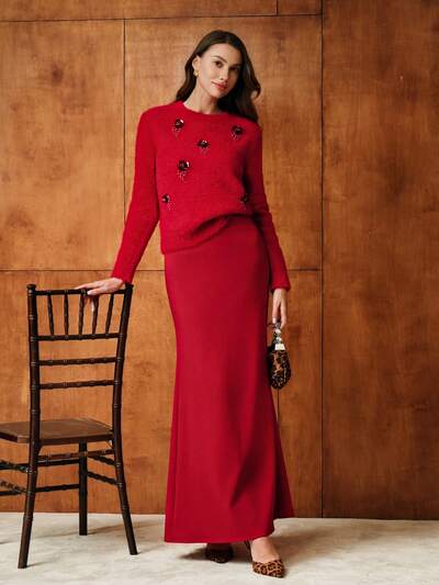 MOTF STUDIO SOLID BODYCON POINTELLE KNIT SKIRT-51%
