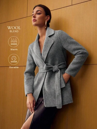 WOOL SHORT BLEND DOUBLE-FACED OVERCOAT WITH BELT, AUTUMN/WINTER-68%
