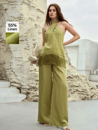 LINEN BLEND DRAWSTRING WAIST SUIT PANTS, SPRING/SUMMER-37%