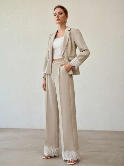 WOMEN'S FASHIONABLE MINIMALIST CONTRAST LACE SUIT PANTS-21%