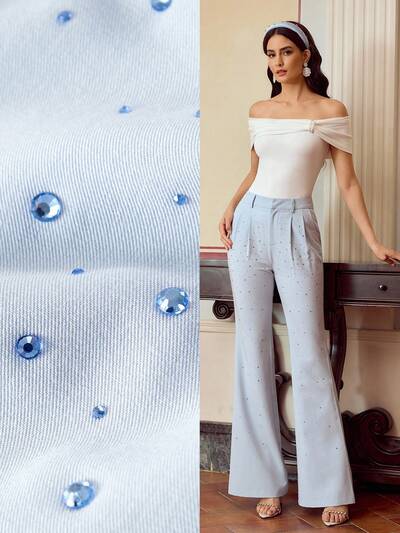 ZEYLAH WOMEN'S ELEGANT RHINESTONES FOLD PLEATED FLARE LEG SUIT PANTS-64%