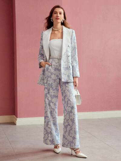 FLORAL PRINT SEAM FRONT WIDE LEG SUIT PANTS-44%