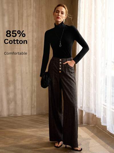 MINIMALIST COTTON BLEND TURTLENECK LONG SLEEVE FITTED T-SHIRT, SPRING/AUTUMN/WINTER-46%