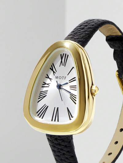 OVAL SHAPED GOLD COLOR ROMAN NUMERAL WOMEN'S WATCH-14%