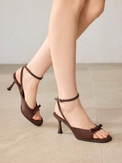 ELEGANT BOW-TIED WOMEN'S HIGH HEEL SANDALS, DELICATE BOW DESIGN, COMFORTABLE WIDE TOE BOX, SLIM HEEL MID HEEL, COMFORTABLE FOR DATING, VALENTINE'S DAY SPRING SHOES