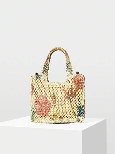 FLORAL PATTERN BRAIDED TOTE BAG-11%