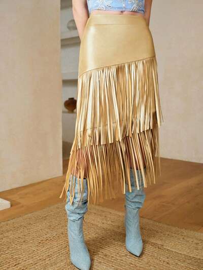 WOMEN'S FIERCE TASSEL PATCHWORK SKIRT-58%