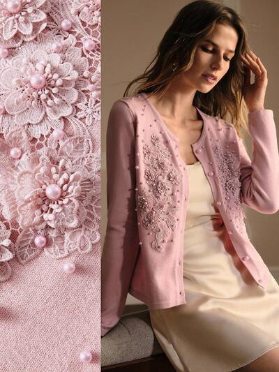 EMBROIDERY & FAUX PEARL DETAIL CARDIGAN KNIT PULLOVER FALL WINTER SWEATER